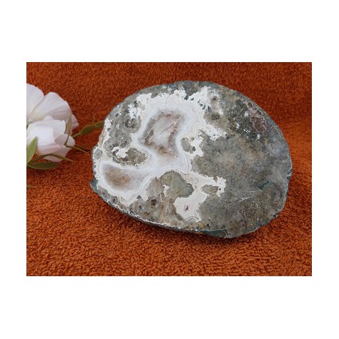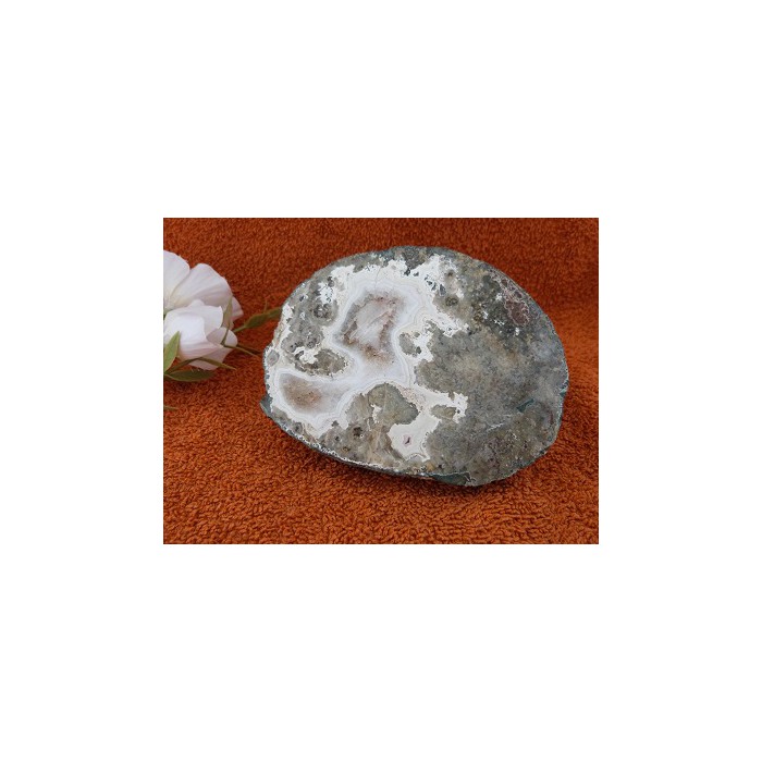Plak Agaat met heel klein beetje Bergkristal in het midden.