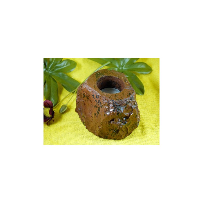 Waxinelicht houder van Mahonie Obsidiaan. Deze zachte vorm van Obsidiaan wordt
