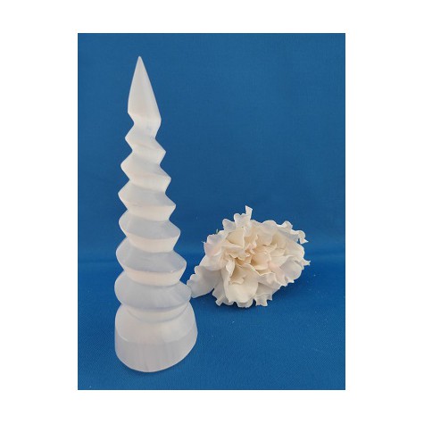 Deze spiraal vorm is geïnspireerd door de natuurlijke taps toelopende torentjes van Seleniet die vaak gevonden worden.